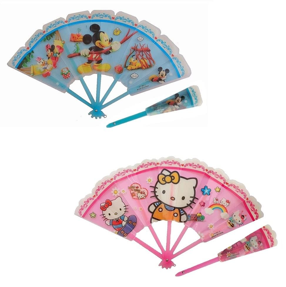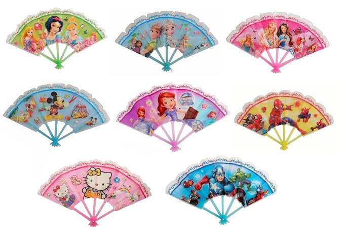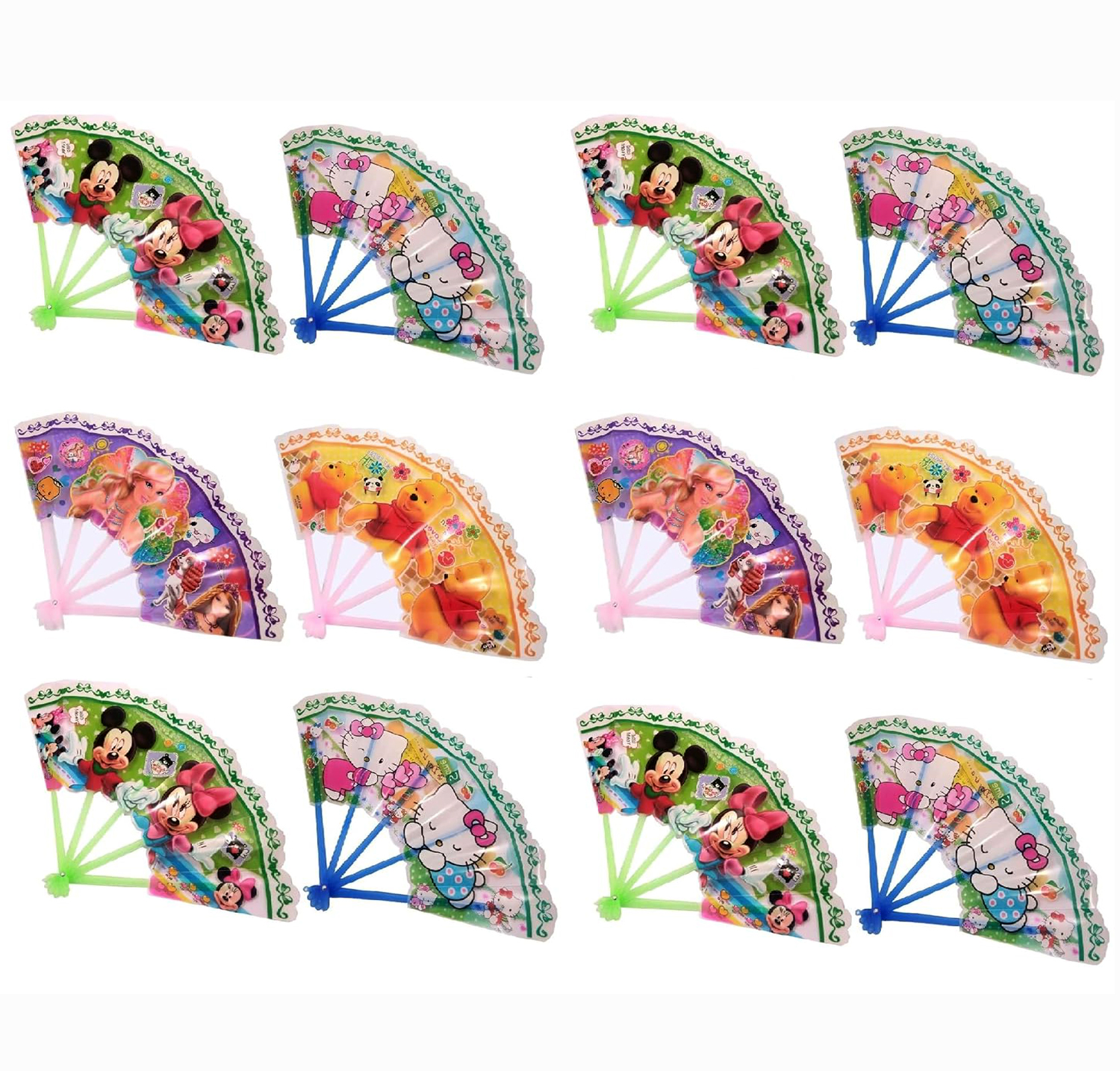 Cartoon Print Hand Held Foldable Plastic Waterproof Hand Fan Toy for Kids, School, Birthday Return Gift Party Favor Theme Party Decoration Stage Shows