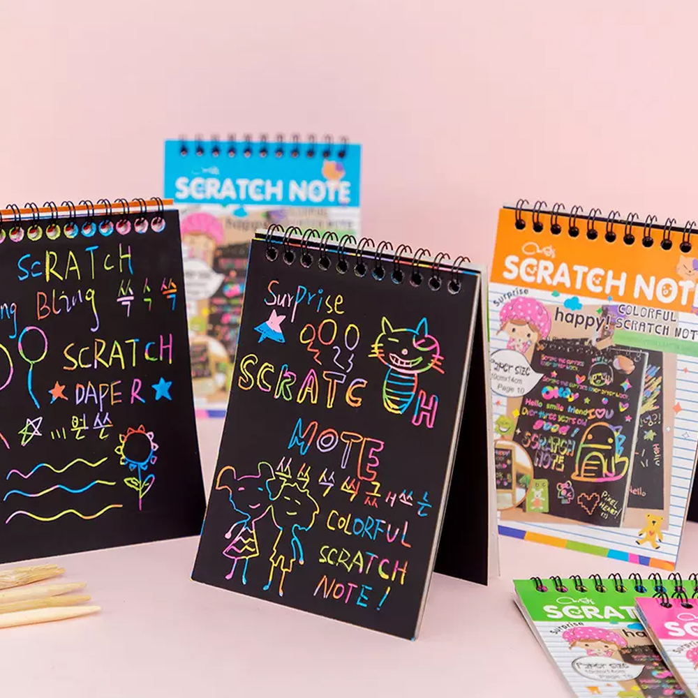This is a very cute little scratch notebook. Give it to your friends kids and they will love it.t is very unique and you will be happy with this purchase.