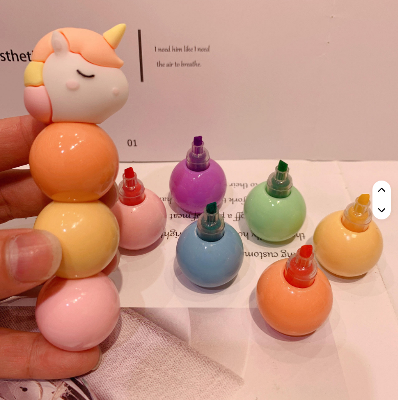 This pen set comes in Multi colour Body. Unicorn shape cute stackable highlighter set'-Vibrant and fun pastel colors-Comes with 3 highlighters, colour are pink,yellow and purple-Perfect for school students It will be a wonderful gift choice for all age group kids. Perfect as Birthday return gift Party Favor for girls, boys and students etc. Back to school supply, Cute Gift and Prize set, Carnival Prizes, Treasure box Prizes for Classroom.
